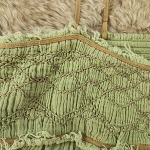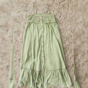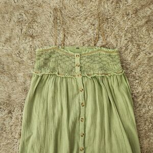 Free People Linda Jo Smocked Gauze Midi Dress Green Women's Size Large