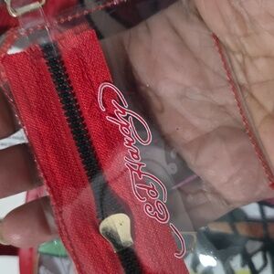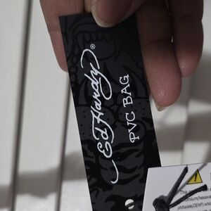 App. 13.5" × 17.5".Stylish Ed Hardy women's bag featuring vibrant red handles and a bold multicolor design. Perfect for adding a pop of color to any outfit. Clear coin pouch included, new with tags. $159 msrp