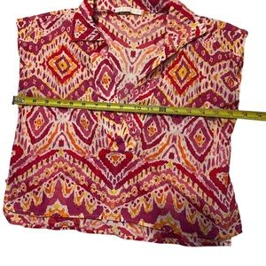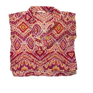 Karlie Pink Orange Ikat Print Cotton Popover Blouse Size Small