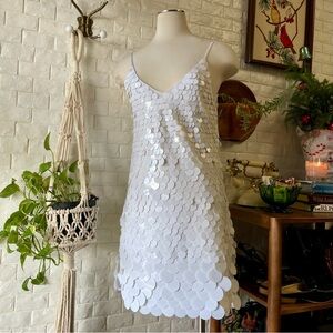 Audrey Parks x Francescas Ellen Piette Mini Dress White Sequin, Tag Size Small
