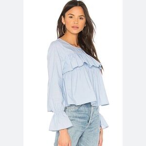 Inspired by men's shirting, they upgraded the adotte with plenty of ruffles and exagerrated bell sleeves. This the ideal blouse for going from work to dinner.