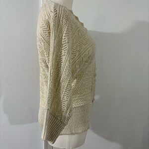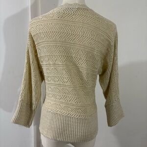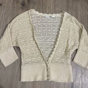 Covington V-Neck Beige Glitter Cardigan Sweater 3/4 Sleeves Sz M Scalloped Trim