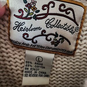 A rare 1996 Heirloom Collectibles Harvest sweater that captures the warmth and nostalgia of fall — perfect for collectors, vintage enthusiasts, or anyone curating a cozy autumn wardrobe.
