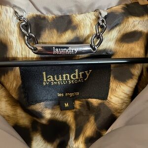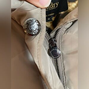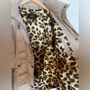 Laundry by Shelli Segal Women's Puffer Jacket Real Fur Collar Taupe Size Medium