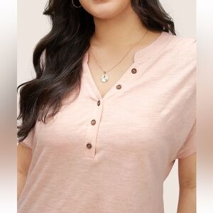 BloomChic Plus Size Cotton Solid Notched Dolman Sleeve T-shirt