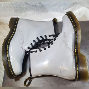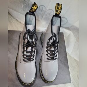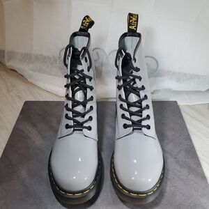 NEW Dr. Martens Womens 1460 High Grain Zinc Grey Patent Leather Boots SIZE 9