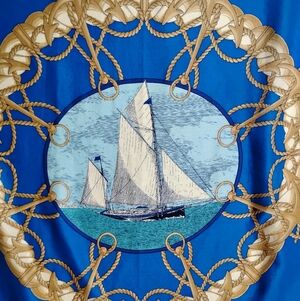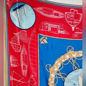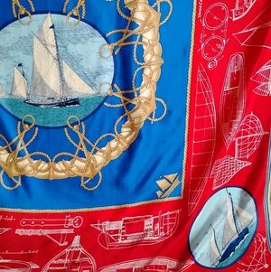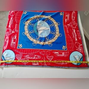 Liz Claiborne Nautical Scarf Vintage Red White Blue Sailing Boating Coastal 35"