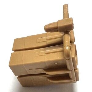 The product is a vintage 1990 Hasbro GI Joe Salvo backpack/launcher with 4 rockets, part of the original G.I. Joe series. This action figure accessory is designed in brown plastic and includes a gun. It is a collectible item from the G.I. Joe franchise, specifically related to the TV show and movie series. The item is a must-have for fans of the military and adventure theme, featuring Salvo as the character. This original accessory from the 1980s is a valuable addition to any action figure collection.