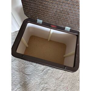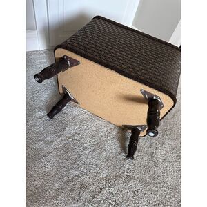 Vintage Redman wicker sewing bench. Hinged lid, storage tray and compartment for fabric, patterns, etc. Or, create your own use. This is in vintage condition with some slight tears in wicker, cracked storage tray, and other minor marks. Legs are removable. See pics for measurements and condition.