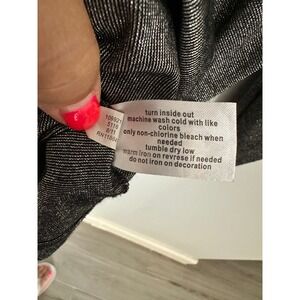 Elegant and comfortable tunic top by Lane Bryant. This plus-size top features a stylish ruched sleeve detail, adding a touch of sophistication to its relaxed silhouette. The metallic threading throughout the gray fabric catches the light, creating a subtle shimmer. Perfect for pairing with leggings or jeans for a casual yet chic look, this tunic is ideal for a dinner date, a night out with friends, or even a relaxed evening at home.