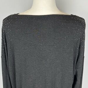 Eileen Fisher Cowl Neck Beaded Top Jersey Knit Long Sleeves Stretch Grey Medium