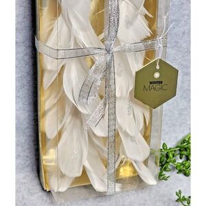 White Silver Glitter Feather Birds Christmas Tree Ornaments Clip On Shabby 2 Pc