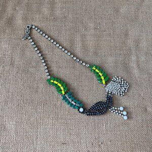 Ann Taylor peacock bird statement crystal large bib collar necklace bold bright