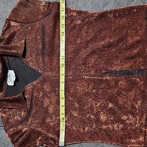 Pictures don't do it justice. Vintage 90s shimmering brown/bronze short sleeve top with a stylish collar from Selena's brand.