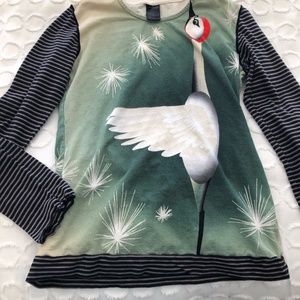 Custo top, size 1. Cat and Canary. Bell sleeves with lace trim.