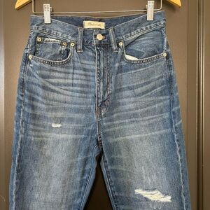 Madewell Rigid High-Rise Medium Wash Distressed 100% Cotton Skinny Jeans 27
