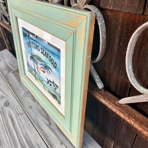 Turquoise Painted Wooden Frame measures 19.5 x 16.5 x .5 inches.