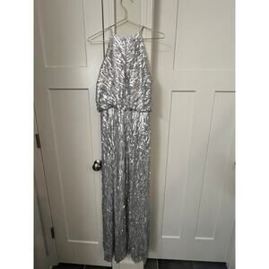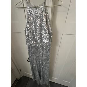 DONNA MORGAN serenity COLLECTION silver SEQUINED SHIMMER GOWN WOMENS 2