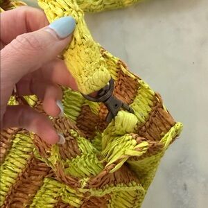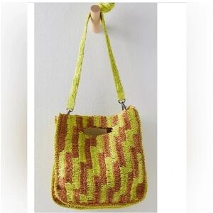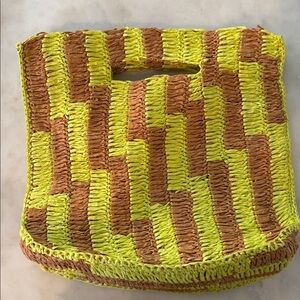 Free People Brunch Date Brown Green Yellow Raffia Purse NWOT