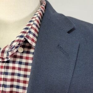 Banana Republic Men's Sport Coat Blazer Two Button Navy Birds Eye Poly Blend 42L