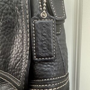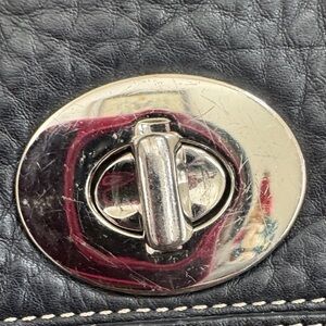 Chic black leather design. Features a turn-lock closure. Perfect for everyday use.