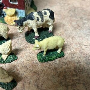 Charming set of farm animal and building figurines. Includes cows, sheep, and a windmill. Perfect for collectors or decor.