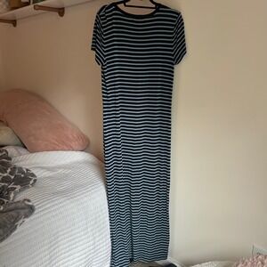 Keywords: maxi dress, striped dress, casual dress, t-shirt dress, womens dress, michael kors dress, long dress, summer dress, beach dress, vacation dress, comfortable dress, lightweight dress, rayon dress, striped maxi dress, black and blue dress
