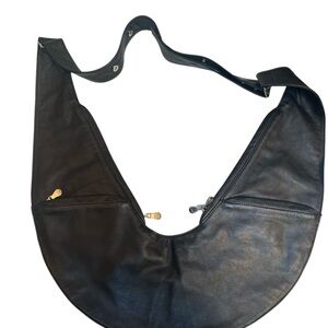 “Sash”Black Leather Sash Bag | Neck Worn Crossbody Organizer | Adjustable | NEW