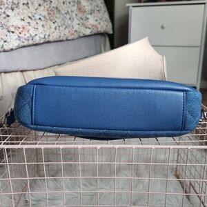 Juicy Couture denim blue quilted should bag featuring the JC logo in rhinestone