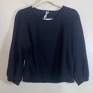 Anthropologie Arya textured top in black. Dolman bell sleeves. elastic wristband. Size XS. Approximate measurements