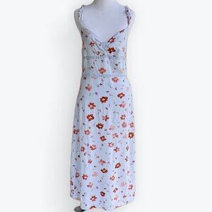 White nylon chiffon duster with bell, or sometimes called butterfly, cape sleeves. Flowy sleeves, & flowing open lightweight sheer white outer layer. Wear over lingerie or as part of a spring lagenlook layering. No closures. The front panels are a double thickness & the back is single - each panel has a ribbon satin edging. Very simple construction…. But what will you wear it over? Sized as a medium. No measurements taken as it doesn’t have front closures; ask if questions. Made in USA