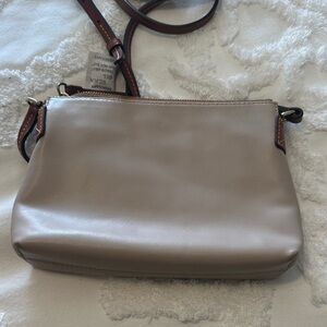 Chic Dooney & Bourke purse in the lightest of pink shade. Perfect for on-the-go elegance. Features a sleek design with a signature logo.