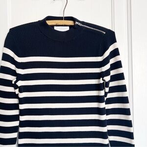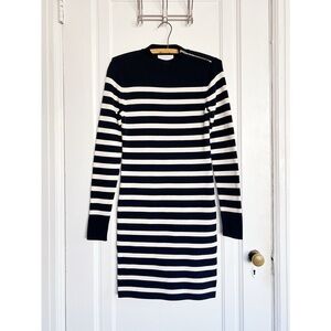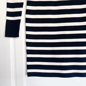 Gorgeous pullover sweater knit dress by Everlane. “The Breton Ribbed Cotton Sweater Dress” style in black & off-white/cream stripe. Bust 30-42“, hips 30-44”, length 35“. Size M, excellent preowned condition.