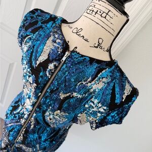 Blue/Teal/Silver Zipped Closure Sequined