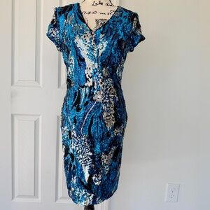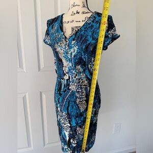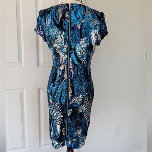 VTG CACHÉ Midi Dress Sequin Blue/Silver Zipped Closure Sz M Stunning Luxury