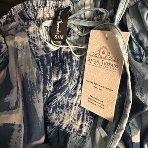 S/M. NWT Sacred Threads Blue and White Patterned Blouse. BL/RD6. 225261