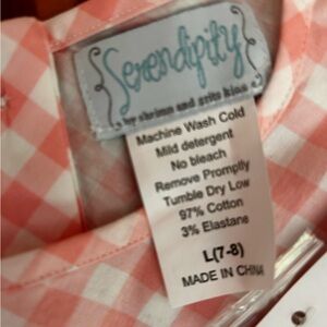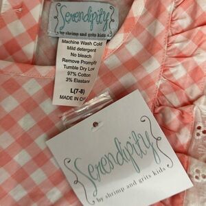Serendipity shrimp and grits top L (7/8) floral with white ruffles