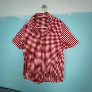 Stylish red checkered shirt perfect for any occasion. Comfortable and trendy, this shirt is a must-have for your wardrobe. Excellent used condition.