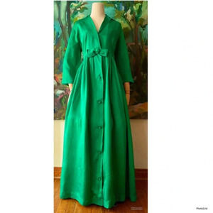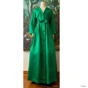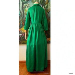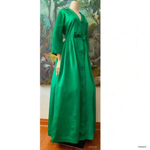1950s Emerald Green Satin Front Button Maxi New look Dress