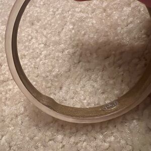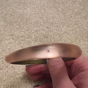 Chic bangles with rose hue and gold details. Stylish and versatile. Light rose/peach color. 2 mini stones are missing on one bracelet but in otherwise good condition. Willing to sell both together or separately. Single with stones $75. Single with no stones $60. Both together $125
