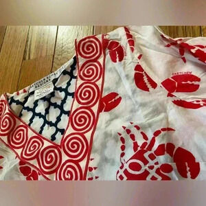 Gretchen Scott Designs women’s 100% Cotton 3/4 sleeve tunic, size Shrimp (XS?). Red and white all over crab print design. EUC. No rips, holes, stains or odors. Please see photos for item details/dimensions. Some photos may appear different in color due to lighting. Ships from smoke-free home.