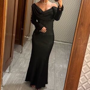 Sophisticated long sleeve dress with a sleek silhouette. Ideal for evening wear.