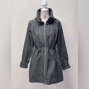 Women’s Gray hooded full zip trench jacket from ATHLETA, size S. Jacket has 2 side zip pockets and 2 cinch toggles on the inside.