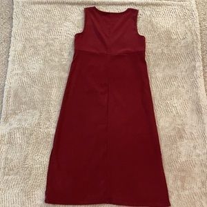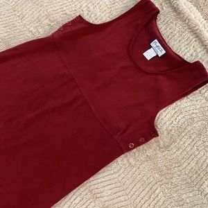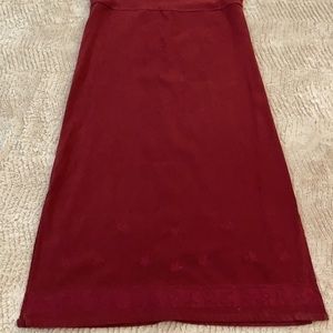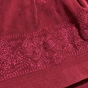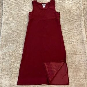 Mary McFadden Vintage maxi sheath dress SzM in great preowned condition. Maroon with embroidered hem. 3 buttons and 12in slits on each side. Armpit to armpit 19in. Full length from shoulder to hem 50in.