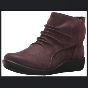 Clark’s Sillian Dark Plum Chell Leather Bootie