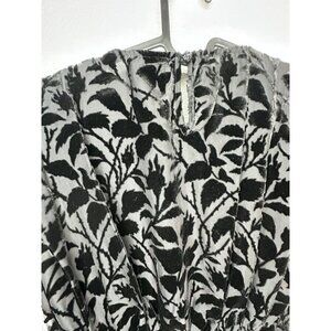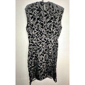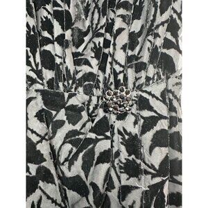 Crafted from vine-patterned burnout velvet fabric, this elegant The Kooples short dress in a classic black hue offers a sophisticated choice for various occasions. The dress features a flattering gathered bodice, a round neckline, and a convenient zip closure at the back. Adding a touch of glamour, the dress is accented with a jeweled ornament at the front waist, and it comes fully lined for comfort. Whether attending a cocktail party, a wedding, or a holy communion, this versatile piece in size S is suitable for multiple events and seasons. Machine wash or dry clean for easy care.