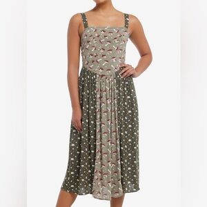 Hot Topic Thorn & Fable Mushroom Green Color-Block Midi Cami Dress, Size S