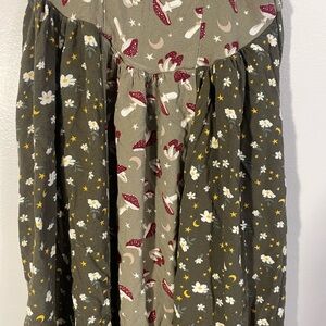 Forage through the forest with this dreamy cottagecore dress on! It features panels of forest green hues with different mushroom patterns printed all over. Comes with adjustable straps and pockets.