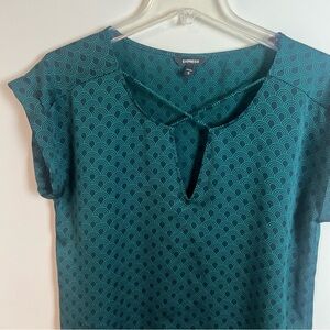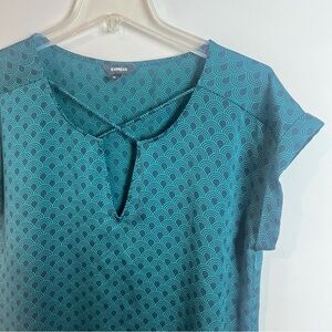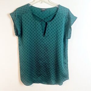 Express Art Deco Short Sleeve Dress Top Green Career Office Business Medium