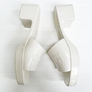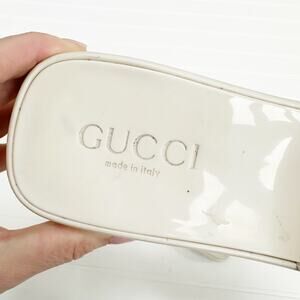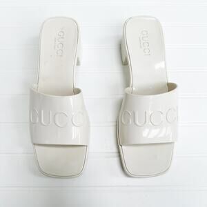 Gucci Rubber Logo Sandals Plastique White PVC Glossy Mule Platform Slide 39